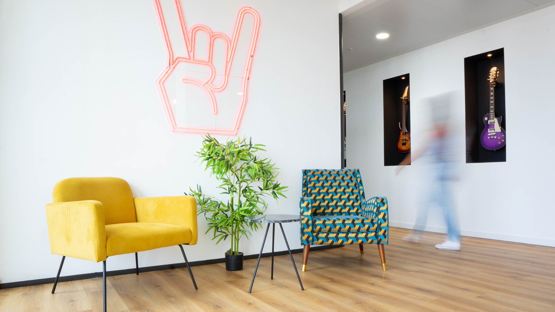 Imprègnez-vous de l'atmosphère rock'n'roll Sundesk pour y installer votre futur bureau. Notre équipe sera ravie de vous faire découvrir nos espaces de travail.